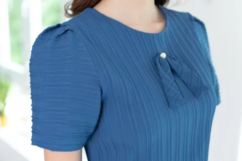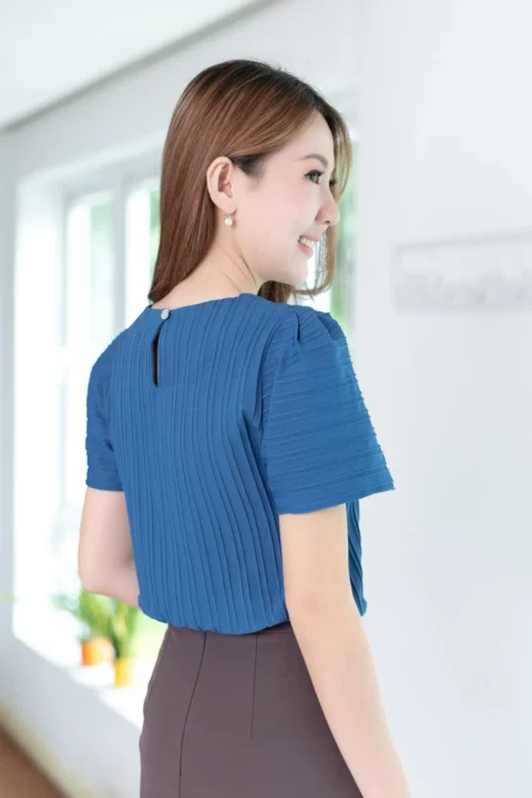 ผ้าอัดลายริ้วรุ่นยอดนิยมกลับมาในแบบใหม่ล่า! มาแรงมั่ก! เนื้อดีไม่ต้องพูดเยอะ ไม่หนามากแต่ไม่บางโป๊ ทรงคอกลมกำลังสบายๆ แต่งโบว์พร้อมมุก แขนสั้นจับจีบรูดช่วงไหล่ คลาสซี่แต่ยังแมทช์ง่าย เชียร์ให้มีไว้นะคะ 😘 ทรงช่วงตัวแพทเทิร์นคอดใต้อก จะเข้ารูปกว่าปกติ สวยพอดีตัว