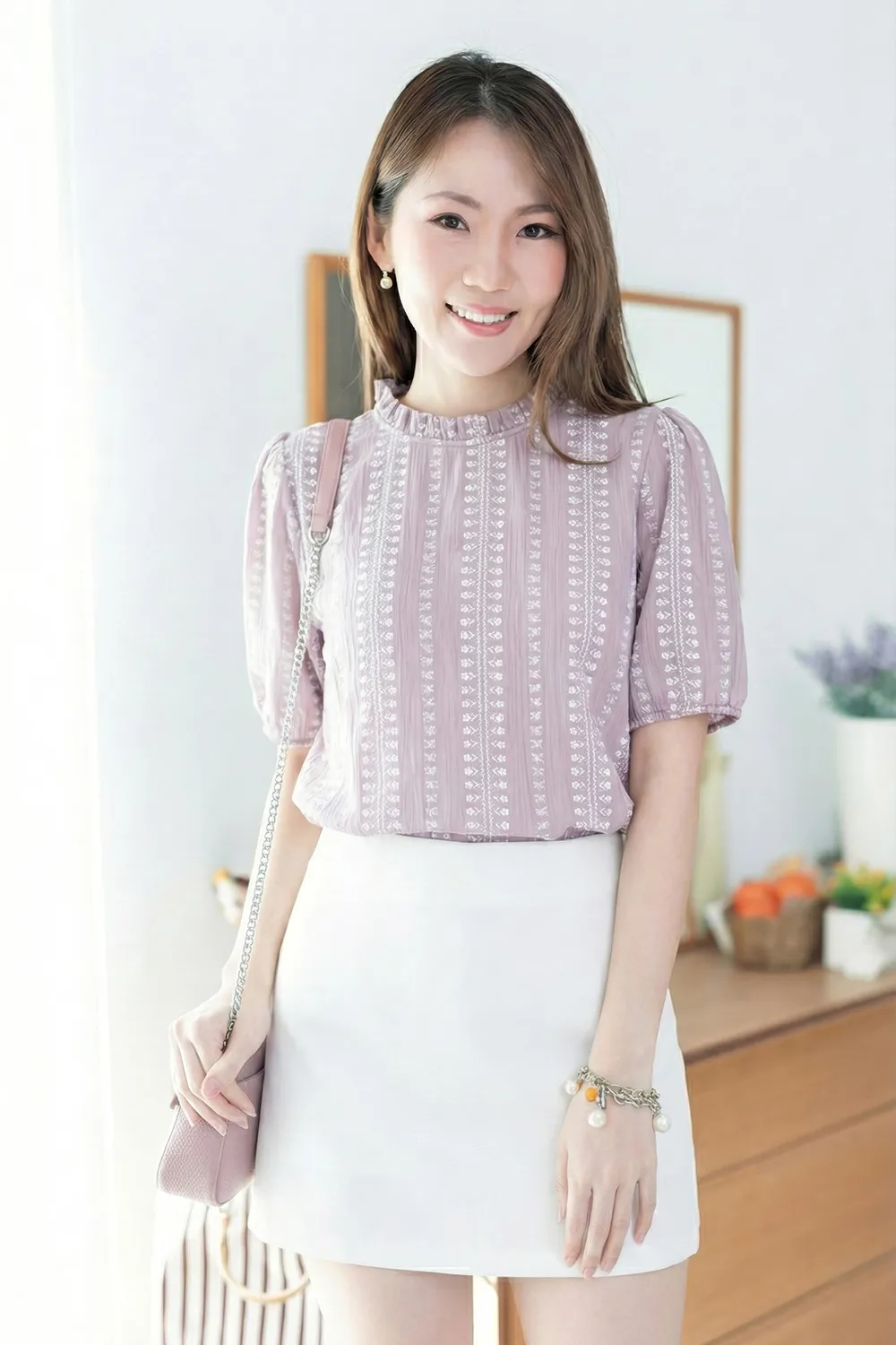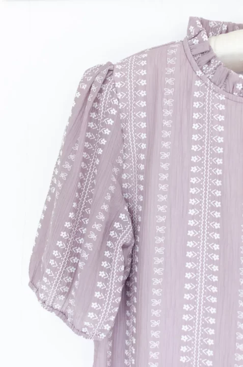 เสื้อทรงนี้อัดแน่นด้วยดีเทลเสริมความน่ารัก คอแต่งจีบสั้น แขนตุ๊กตาจัมพ์ยางยืดปลายแขน ผ้าอัดย่นลายเปลือกไม้ฟีลโปร่งๆดูนุ่มๆ มาพร้อมซับในช่วงตัวทั้งด้านหน้าและด้านหลัง มีลายเถาไม้เลื้อยสีอ่อนสกรีนบนผิวผ้า ให้อารมณ์ละมุนบนผ้าฟุ้งๆ สวยหวานมากค่ะ