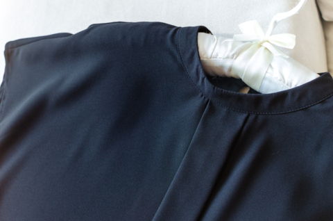 เสื้อแขนล้ำ คอปิด เนื้อผ้าโพลีเอสเตอร์เนื้อดี ทิ้งตัวสวย แต่งสาบหลอกด้านหน้ายาว ผ่าหยดน้ำติดกระดุมด้านหลัง ดูเก๋และเท่ห์ ผ้าใส่สบายมั่ก