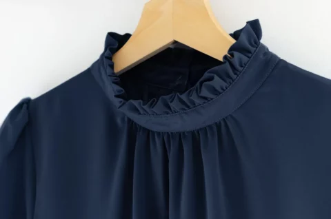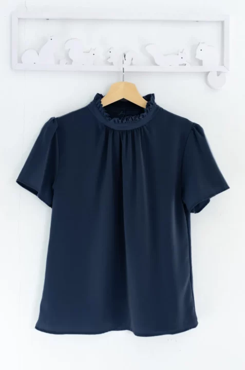 เสื้อคอปิดจับจีบตั้งๆ กลับมาแล้วค่า ใต้คอจับจีบรูดเบาๆโชว์ความพลิ้วสวยของผ้า แขนสั้น ด้านหลังผ่าหยดน้ำติดกระดุม ตัดเย็บด้วยผ้าเนื้อลื่นเนียน ไม่บาง ผ้าทิ้งตัว มีน้ำหนัก ใส่สบายไม่ผิดหวังค่า