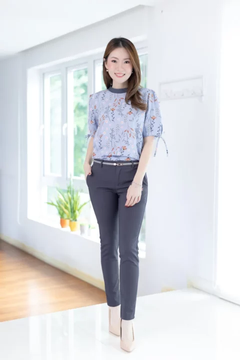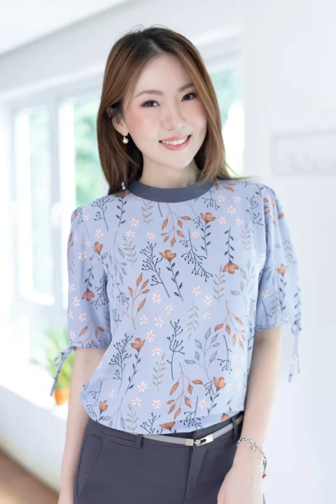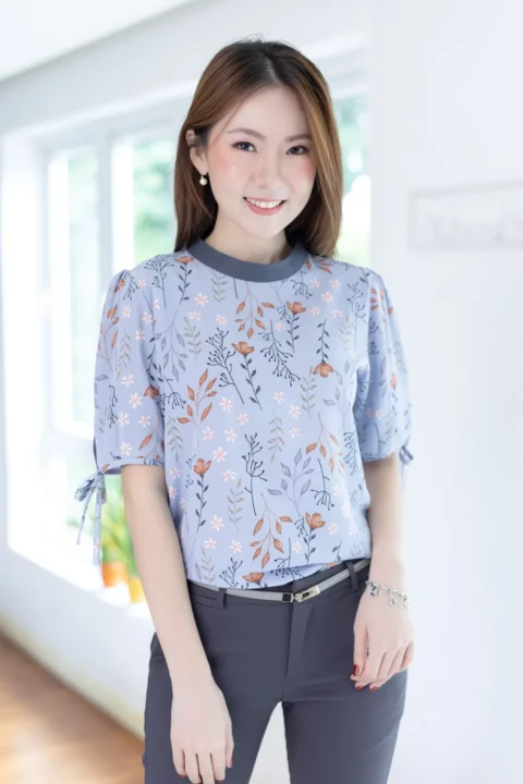 Color : ฟ้าตุ่นลายดอกไม้ แต่งขอบเทา