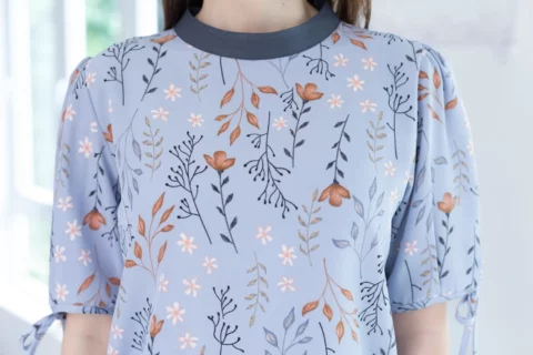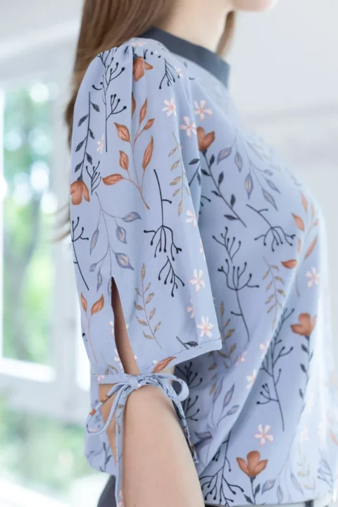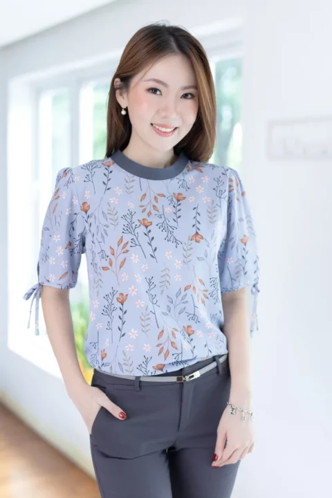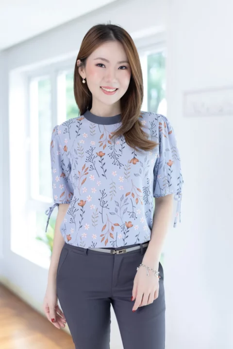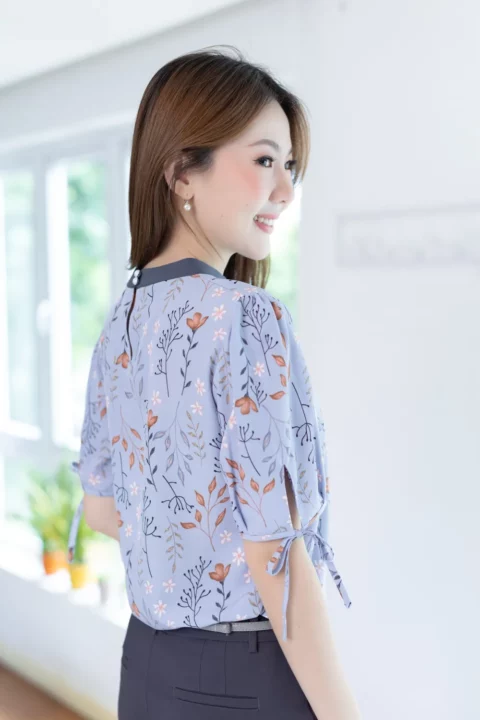 เสื้อแบบเรียบร้อย คอปิด แขนยาวประมาณเหนือศอกแต่งสายผูกโบว์ได้ ด้านหลังคอผ่าหยดน้ำติดกระดุม ทรงเสื้อคอดใต้อกนิดๆดูเพรียวพอดีตัว แบบเรียบง่าย สวมใส่ง่าย ขอแนะนำนะคะ