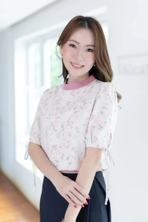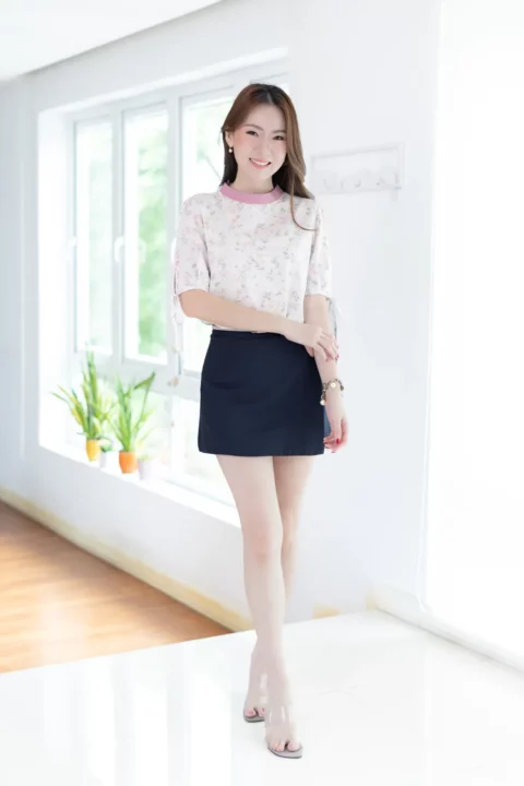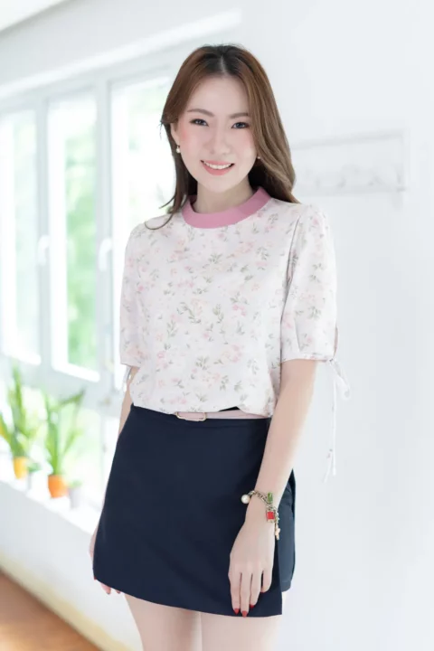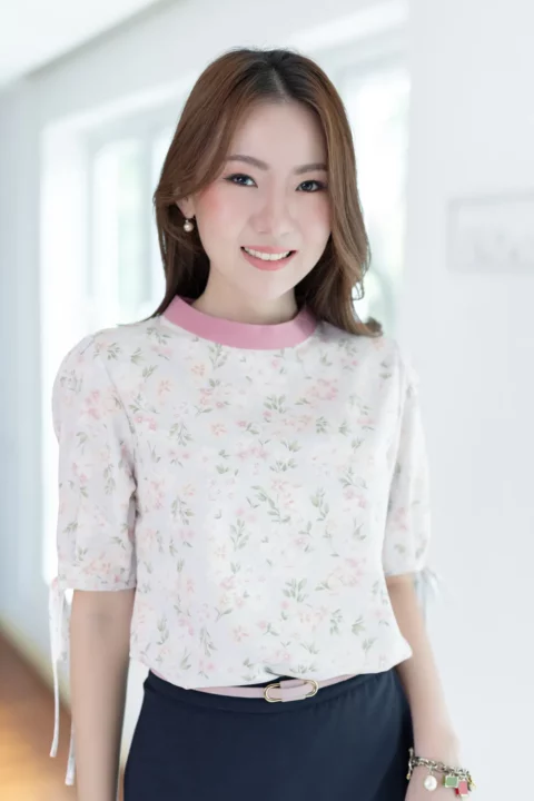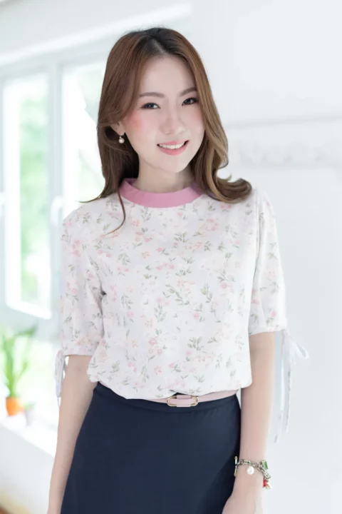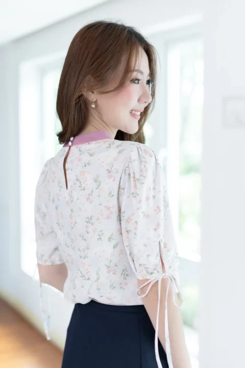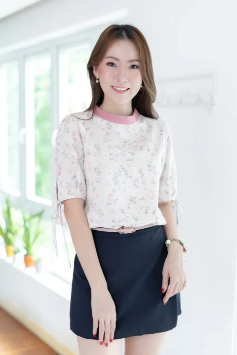 เสื้อแบบเรียบร้อย คอปิด แขนยาวประมาณเหนือศอกแต่งสายผูกโบว์ได้ ด้านหลังคอผ่าหยดน้ำติดกระดุม ทรงเสื้อคอดใต้อกนิดๆดูเพรียวพอดีตัว แบบเรียบง่าย สวมใส่ง่าย ขอแนะนำนะคะ
