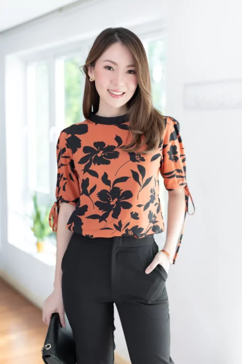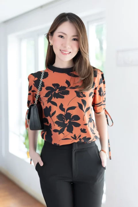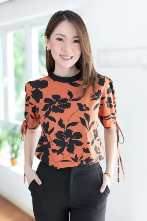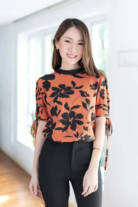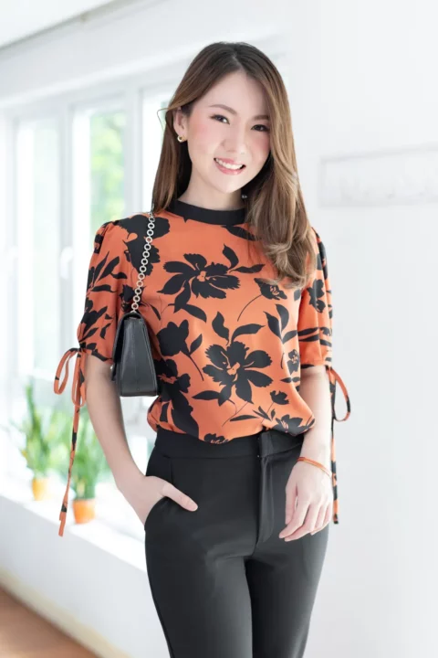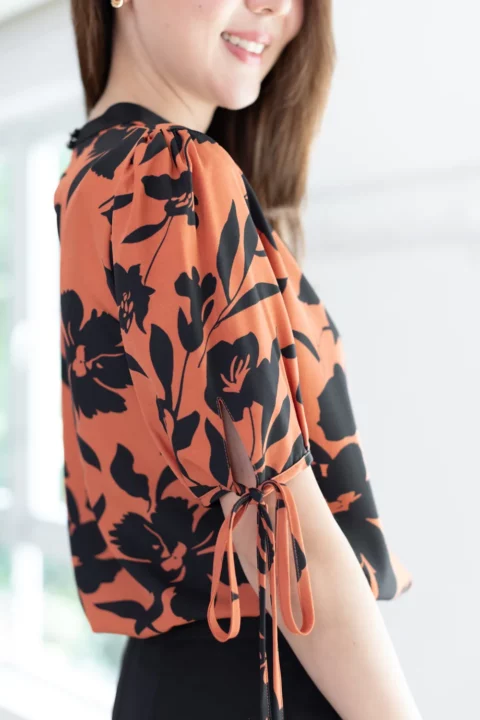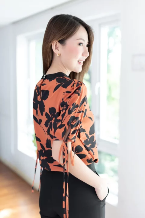 เสื้อแบบเรียบร้อย คอปิด แขนยาวประมาณเหนือศอกแต่งสายผูกโบว์ได้ ด้านหลังคอผ่าหยดน้ำติดกระดุม เรียบง่าย สวมใส่ง่าย ขอแนะนำนะคะ