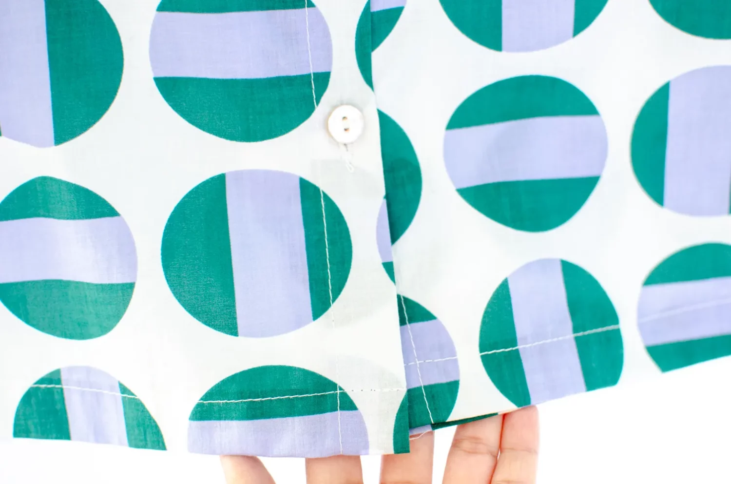 เสื้อคอตตอนแขนกุด ผ้าไม่หนามากใส่สบาย คอจีนผ่ากระดุมด้านหน้า แต่งกระเป๋าจริงไซส์มินิฝั่งซ้าย ตัวเสื้อลายพิมพ์กราฟิกกลมๆสีสดใส