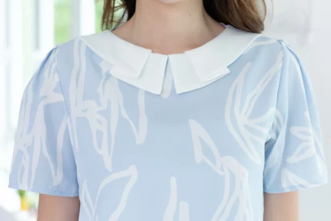 NT2473 Folded Collar Graphic Blouse – Light Blue