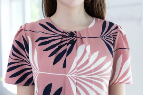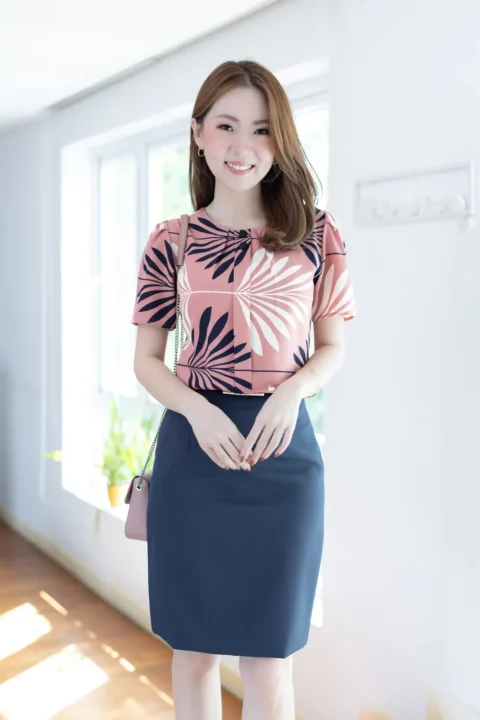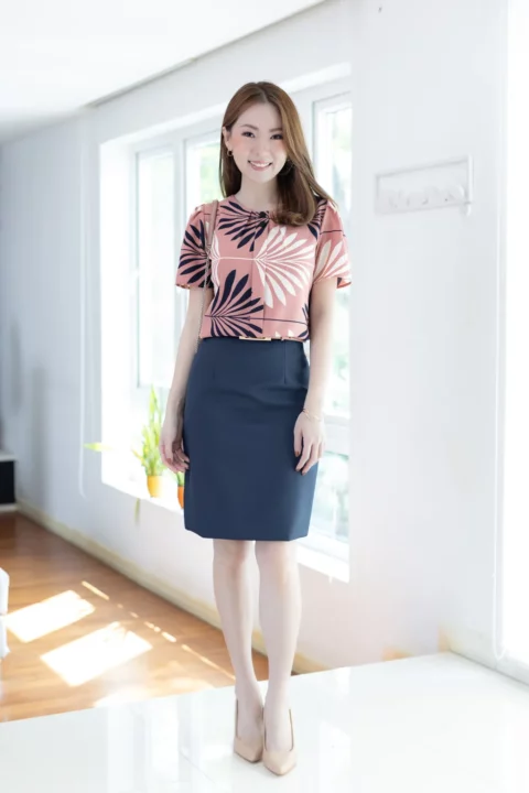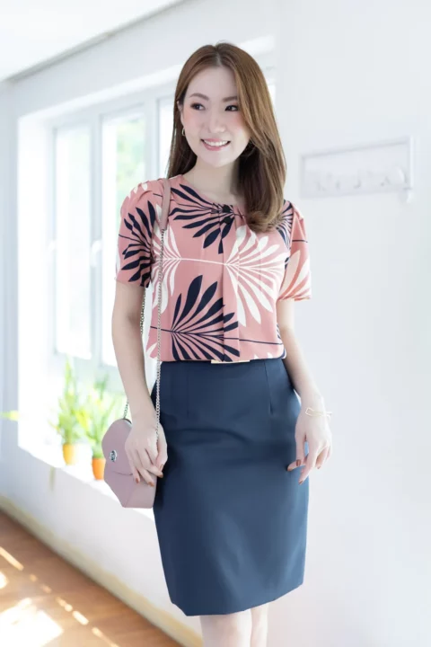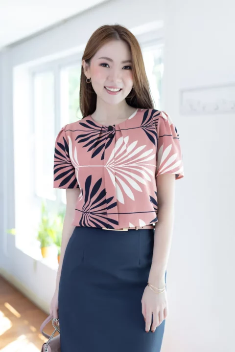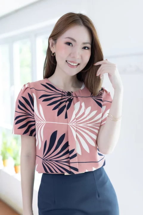 เสื้อลายใบเฟิร์น คอกลมแต่งสาบหลอกด้านหน้ายาวๆ พร้อมดีเทลจีบด้านข้างสาบ ช่วงอกแต่งกระดุมปั๊มสีพื้น 1 คู่ ตัวผ้าเป็นเนื้อไหมอิตาลีนิ่มเนียนที่ทุกคนหลงรัก ยับยาก แห้งไว ดูแลง่าย ทรงคอดใต้อก ช่วงตัวรู้สึกพอดีเข้ารูปขึ้น ใส่สวยเพรียวค่ะ
