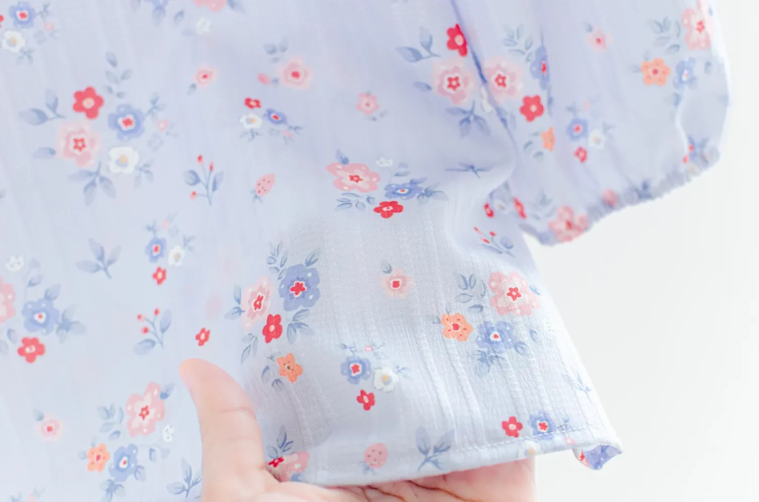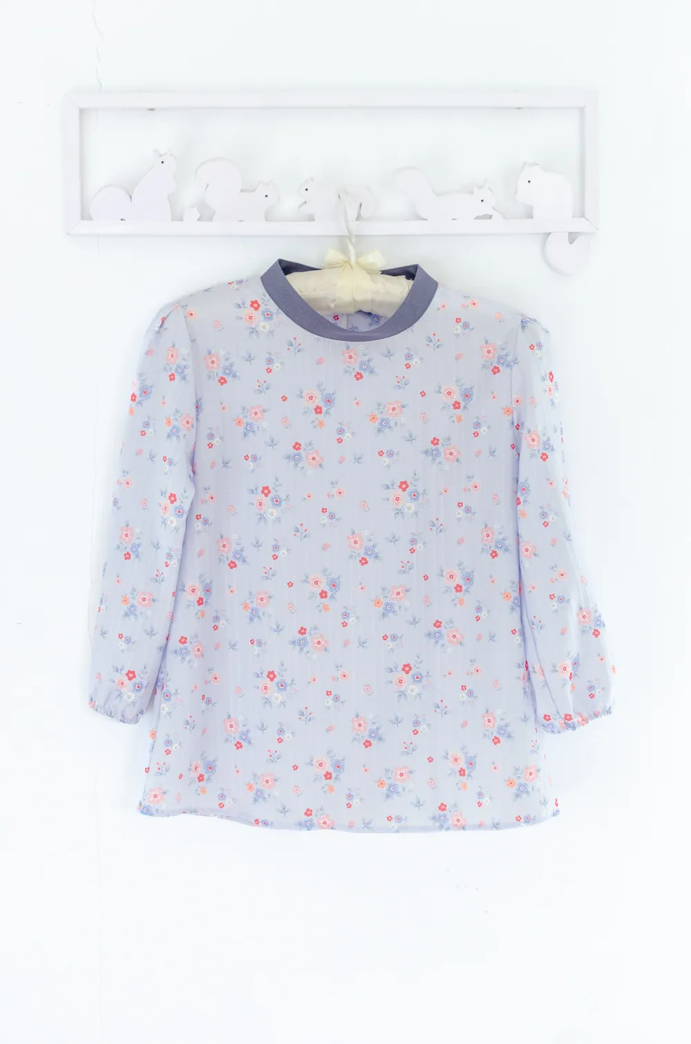 เสื้อแขนสี่ส่วน ใส่ได้หลายโอกาส คอปิดสวยสุภาพ ด้านหลังผ่าหยดน้ำสั้นๆติดกระดุม สวมใส่สะดวก เนื้อผ้าโพลีเอสเตอร์ผสมมี Texture ริ้ว ในตัว พิมพ์ลายดอกไม้หวานๆนุ่มๆ น่ารักเรียบง่ายค่ะ