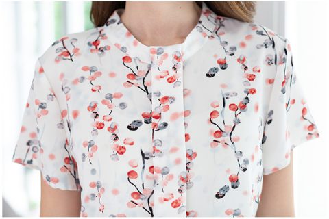 เสื้อแขนสั้น ผ้าโพลีเอสเตอร์เนื้อดี ทิ้งตัวสวย ไม่พอง คอปิด แต่งสาบหลอกด้านหน้ายาวๆ ผ่าหยดน้ำ ติดกระดุมด้านหลัง พิมพ์ลายกราฟิกทั่วตัว ดีไซน์สวย ใส่เรียบร้อยๆ แนะนำสำหรับสาวออฟฟิศเลยค่า