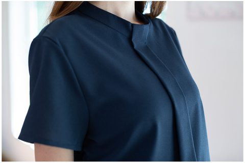 เสื้อแขนสั้น ผ้าโพลีเอสเตอร์เนื้อดี ทิ้งตัวสวย ไม่พอง คอปิด แต่งสาบหลอกด้านหน้ายาวๆ ผ่าหยดน้ำ ติดกระดุมด้านหลัง สีสวยมาก ใส่เรียบร้อยๆ แนะนำสำหรับสาวออฟฟิศเลยค่า