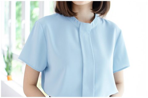 NT407 Placket Short Sleeve Blouse – Light Blue