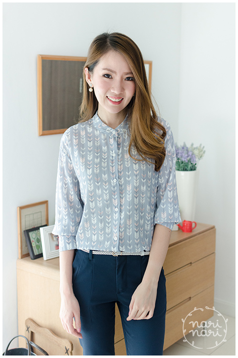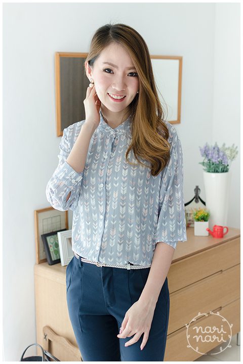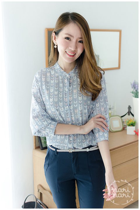 เสื้อแขนยาวผ้าชีน่า นิ่ม เย็น ทิ้งตัว สีเทาอ่อน พิมพ์ลายหางลูกธนู สีขาวสลับชมพูพาสเทล ดูนวลๆ คอจีน ผ่ากระดุมหน้า แขนยาว ลายสวยสีสวย อารมณ์นุ่มๆ ใส่สบายมากด้วยค่ะ ผ้าเนื้อดี ใส่แล้วไม่พองค่า