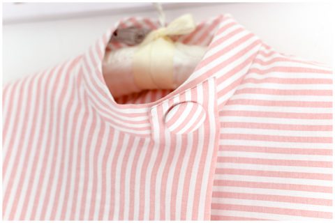 เสื้อลายริ้วน่ารักๆ เก๋ๆ ตัวนี้ดีไซน์คอตั้ง แต่งกระดุมหลอก 1 เม็ด ด้านหน้า แต่งผ้าทบหลอก เล่นลายผ้าแนวตั้ง ตัดกับผ้าลายขวางด้านหลัง เก๋ไก๋ลงตัว แขนสั้น ด้านหลังเจาะหยดน้ำ ติดกระดุม ใช้ผ้าคอตตอนอ็อกซ์ฟอร์ด เนื้อดี ริ้วสีแดงอมชมพูๆ ใส่สวยค่า
