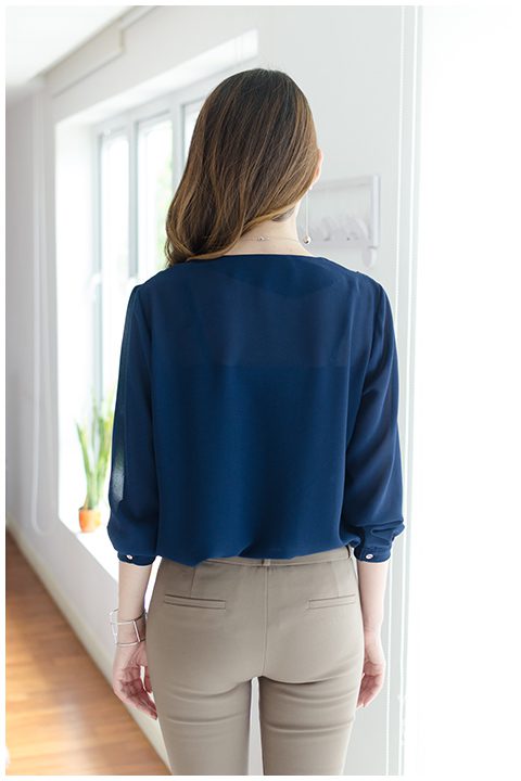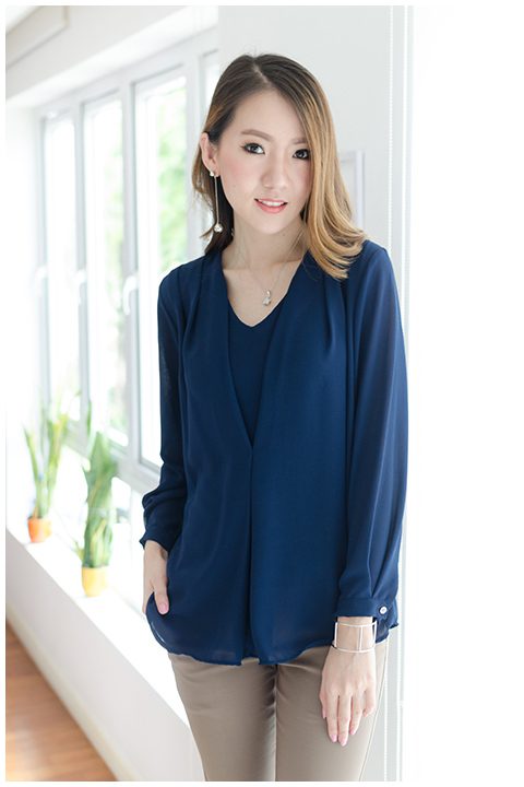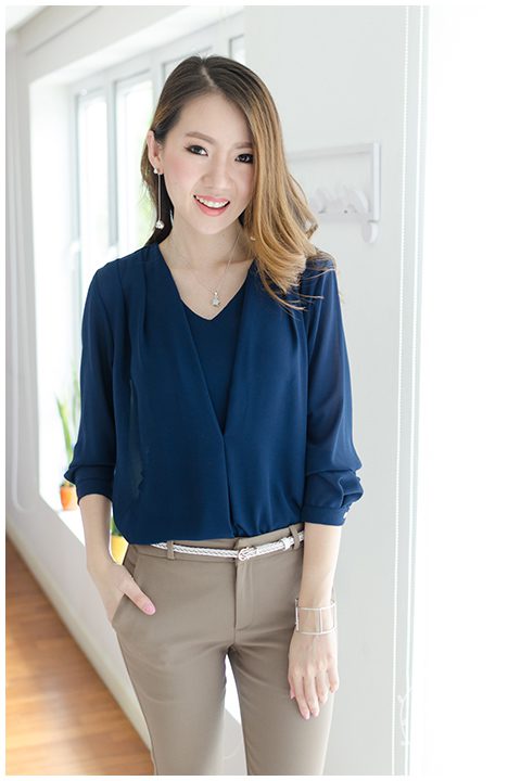 เสื้อชีฟองเนื้อทราย คอวี ตีเกล็ดช่วงไหล่ ด้านหน้าแต่งผ้าซ้อนจับจีบเบาๆ จับทวิสตรงกลาง ดูเป็นเลเยอร์ซ้อนๆ สวยไม่เหมือนใคร ใส่ปล่อยชายก็สวย ใส่นุ่งทับก็เรียบร้อยค่า