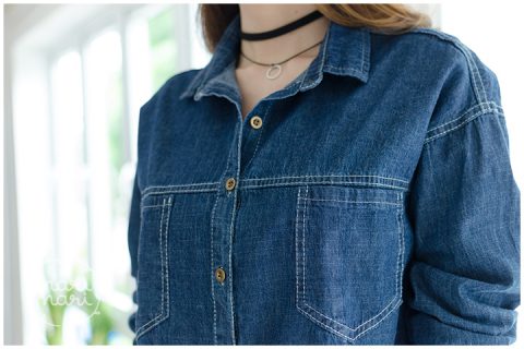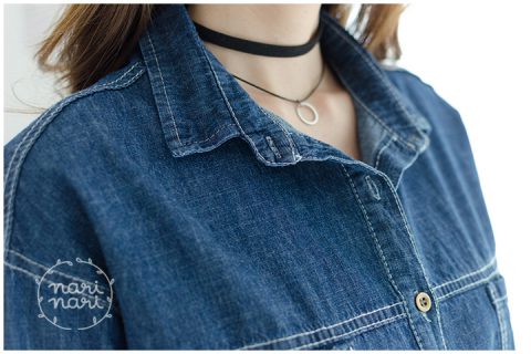 เสื้อเชิ้ตยีนส์สีเข้ม แขนยาว แต่งกระเป๋าด้านหน้า เดินเส้น ตะเข็บสวยเท่ ตัวยาว ใส่หลวมๆ เป็นเสื้อคลุมก็ได้ค่ะ ได้ลุคสตรีทๆ เกาหลีเบาๆ ใส่ได้ตลอดๆ
