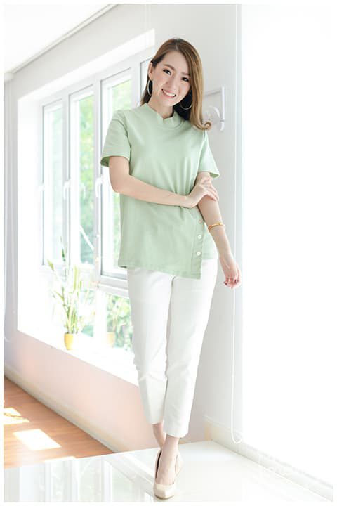 NT709 Sided Button Top – Pastel Mint