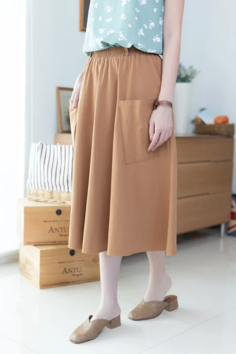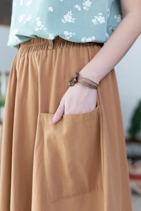 กระโปรงทรงสบาย เอวจับสม็อคยางยืด มีห่วงสำหรับเผื่อใส่เข็มขัดเพิ่มแอคเซสเซอรี่ให้เก๋ขึ้นได้ด้วย เนื้อคอตตอนแคนวาสผ้าบางผ้านิ่ม แต่งกระเป๋าจริงทรงสี่เหลี่ยม สวยๆชิลๆ ความยาวกำลังดีค่า
