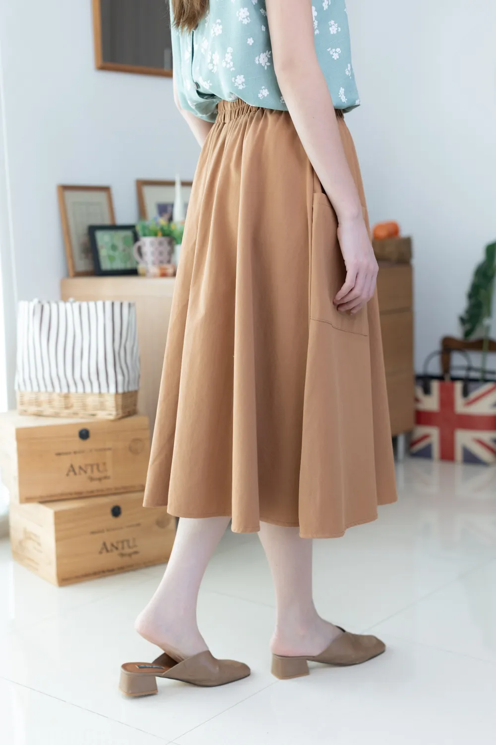 กระโปรงทรงสบาย เอวจับสม็อคยางยืด มีห่วงสำหรับเผื่อใส่เข็มขัดเพิ่มแอคเซสเซอรี่ให้เก๋ขึ้นได้ด้วย เนื้อคอตตอนแคนวาสผ้าบางผ้านิ่ม แต่งกระเป๋าจริงทรงสี่เหลี่ยม สวยๆชิลๆ ความยาวกำลังดีค่า