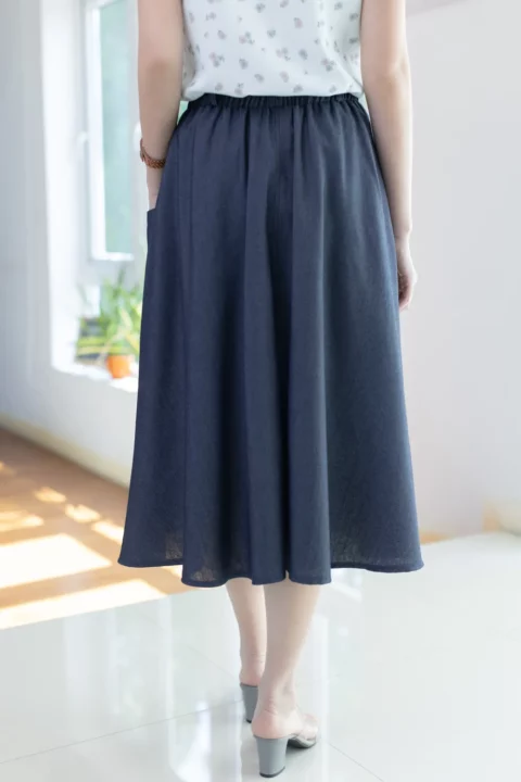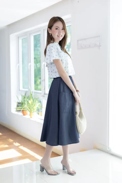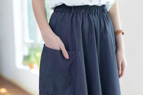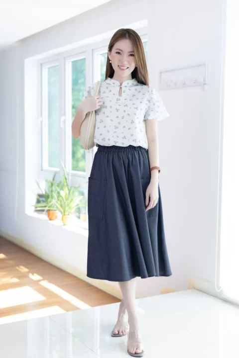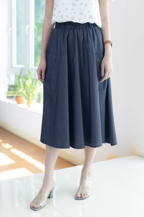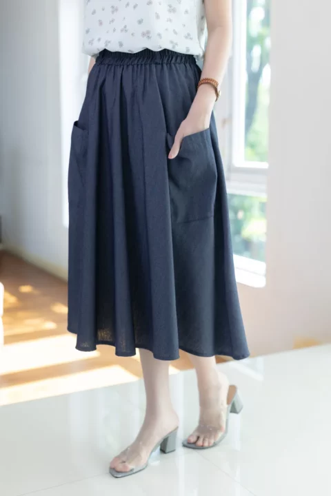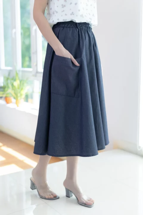 กระโปรงทรงสบาย เอวจับสม็อคยางยืด มีห่วงสำหรับเผื่อใส่เข็มขัด เพิ่มแอคเซสเซอรี่ให้เก๋ขึ้นได้ด้วย เนื้อคอตตอนยีนส์บางผ้านิ่ม สียีนส์ฟอกกำลังสวย แต่งกระเป๋าจริงทรงสี่เหลี่ยม สวยๆชิลๆ ความยาวกำลังดีค่า