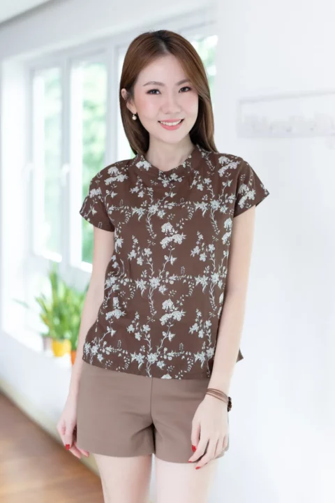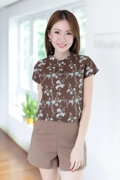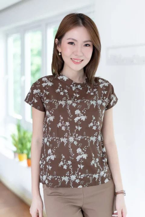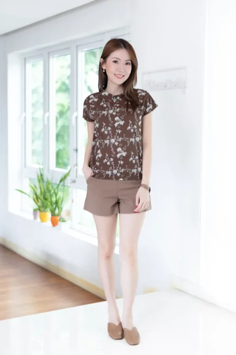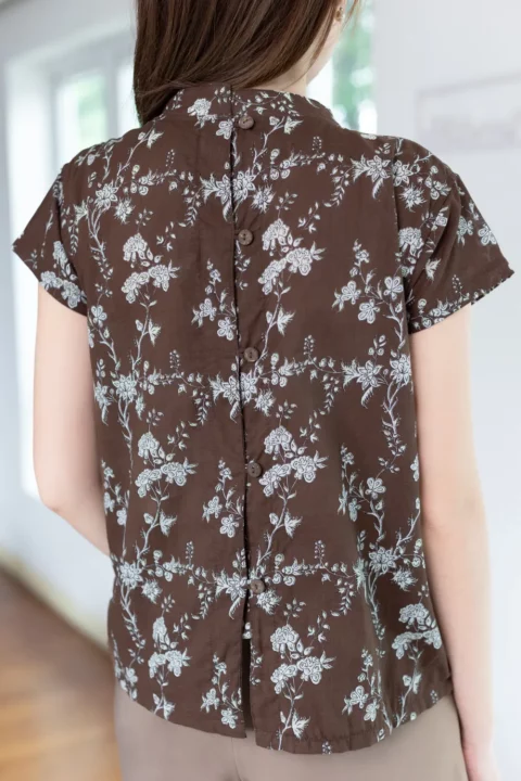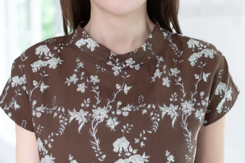 เสื้อแนววีคเอนด์ ไว้ใส่หลวมๆ ดูสบายๆ มีดีเทลผ่ายาวด้านหลัง ติดกระดุมจากกะลามะพร้าวพร้อมห่วงคล้อง ทรงคอตั้งเล็กน้อยยังได้ลุคแบบคลาสสิค ต่อแขนทรง Cap สั้น ลายนี้เป็นผ้าคอตตอนลินิน ผ้านิ่ม เนื้อเบาสบาย ลายพิมพ์ดอกไม้เหมาะกับวันหยุดเลย