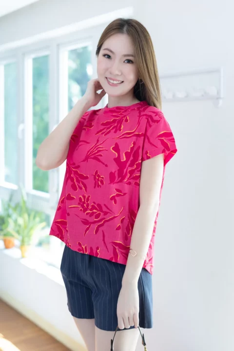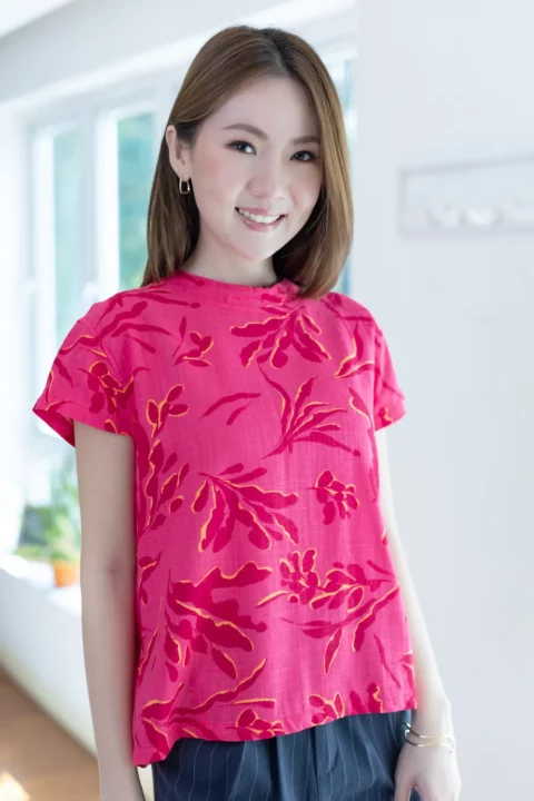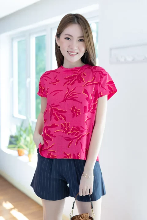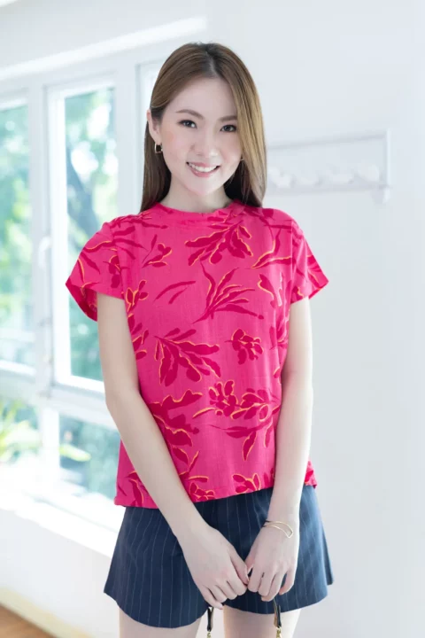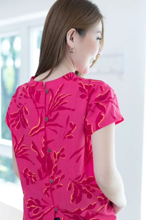เสื้อแนววีคเอนด์ ไว้ใส่หลวมๆ ดูสบายๆ มีดีเทลผ่ายาวด้านหลัง ติดกระดุมจากกะลามะพร้าวพร้อมห่วงคล้อง ทรงคอตั้งเล็กน้อยยังได้ลุคแบบคลาสสิค ต่อแขนทรง Cap สั้น ลายนี้ตัดเย็บด้วยคอตตอนลินิน ทอลายสลาฟสวยผ้านิ่มทิ้งตัว พิมพ์ลายใบไม้ เหมาะกับวันหยุดเลย