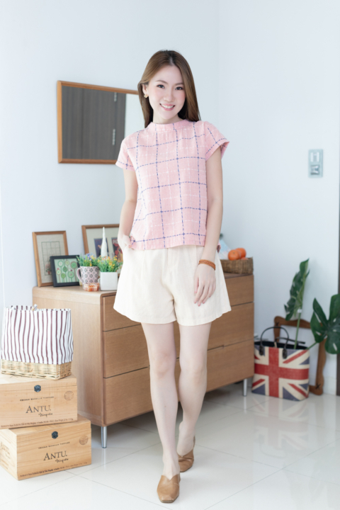 เสื้อแนววีคเอนด์ ไว้ใส่หลวมๆ ดูสบายๆ มีดีเทลผ่ายาวด้านหลัง ติดกระดุมจากกะลามะพร้าวพร้อมห่วงคล้อง ทรงคอตั้งเล็กน้อยยังได้ลุคแบบคลาสสิค ต่อแขนทรง Cap สั้น ลายนี้ตัดเย็บด้วยคอตตอนลินิน ผ้าไม่หนา มี Texture จากการทอ สวยเก๋ เหมาะกับวันหยุดเลย