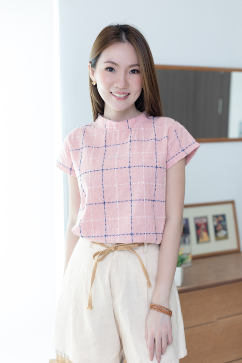 Color : ชมพู ตารางขาว-น้ำเงิน