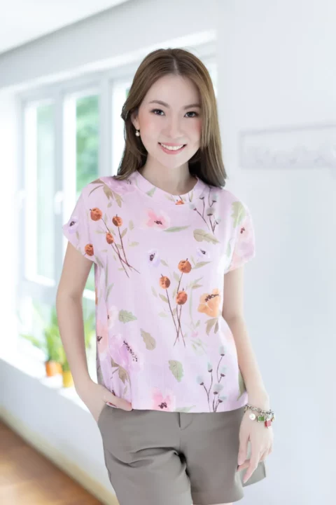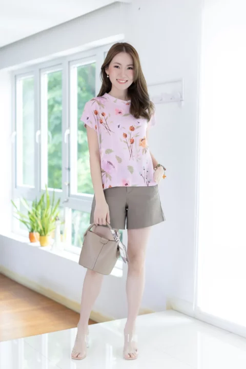 เสื้อแนววีคเอนด์ ไว้ใส่หลวมๆ ดูสบายๆ มีดีเทลผ่ายาวด้านหลัง ติดกระดุมจากกะลามะพร้าวพร้อมห่วงคล้อง ทรงคอตั้งเล็กน้อยยังได้ลุคแบบคลาสสิค ต่อแขนทรง Cap สั้น ลายนี้ตัดเย็บด้วยคอตตอนลินิน ผ้าไม่หนา มี Texture จากการทอ สวยเก๋ เหมาะกับวันหยุดเลย