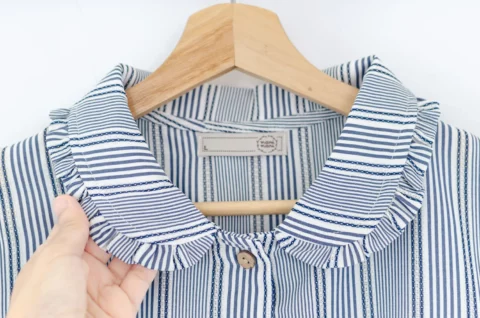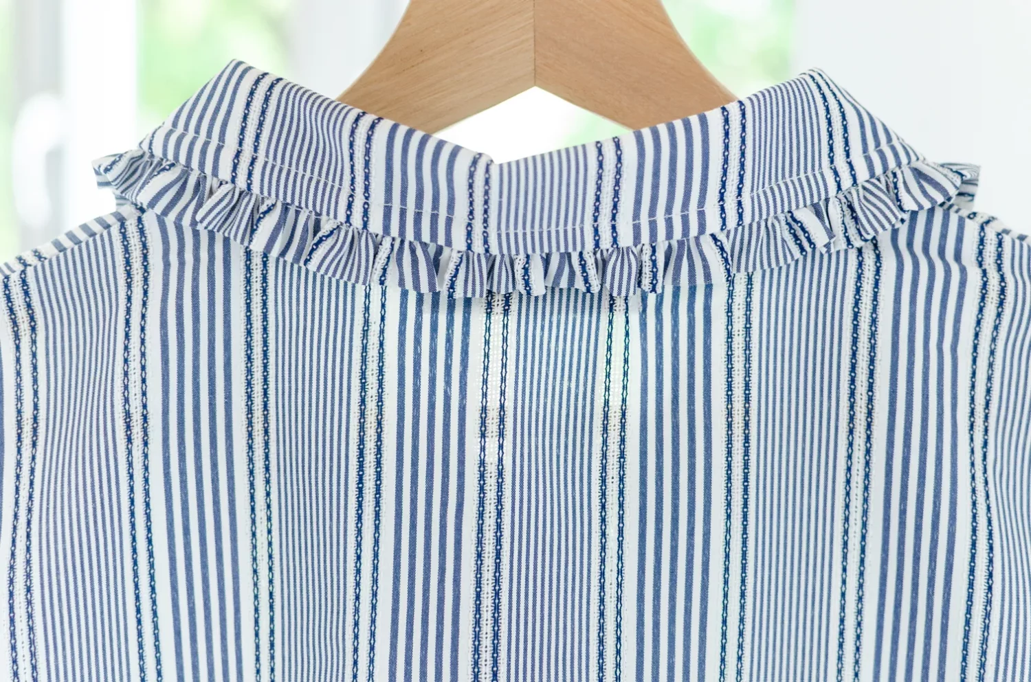 PT0245 Frill Peter Pan Collar Shirt – Blue Stripe
