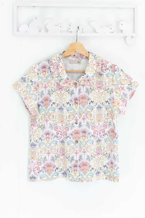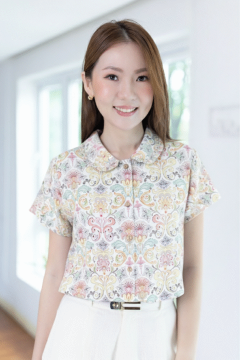Size 38 – รอบอก 38”, คอกว้าง 6.5”, ไหล่ 15”, รอบวงแขน 18”, แขนยาว 5.5”, รอบปลายแขน 14”, ยาว 22”, รอบชายเสื้อ 40”
