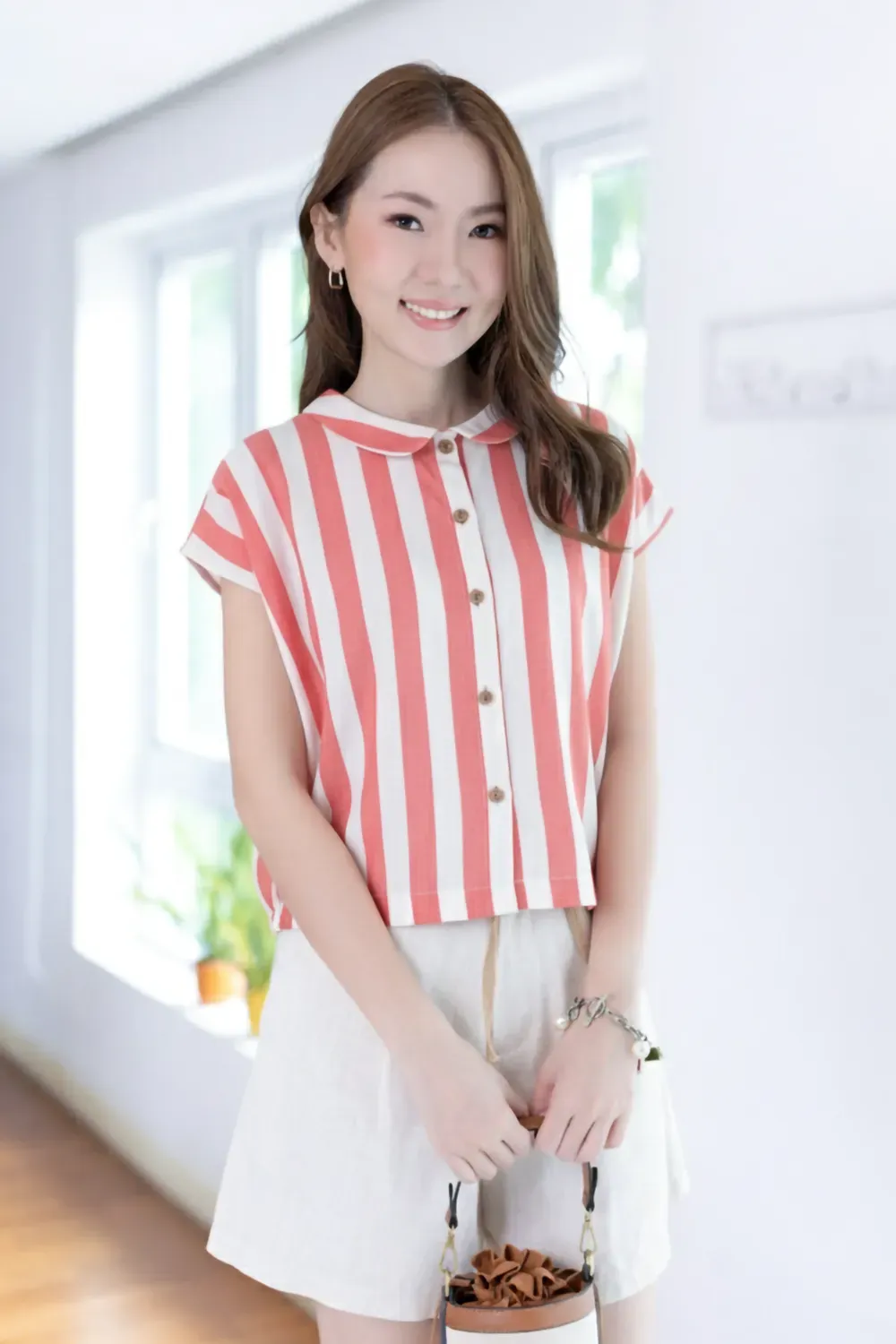 PT0300 Striped Crop Boxy Shirt – Merry Red