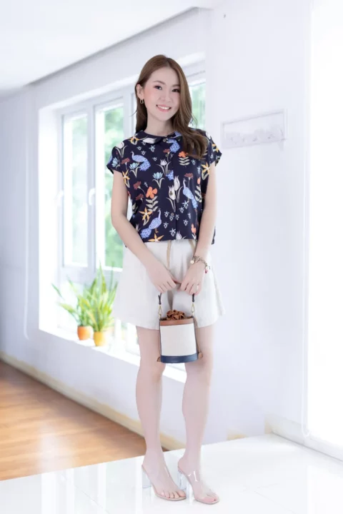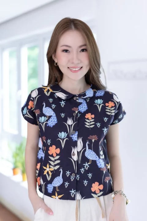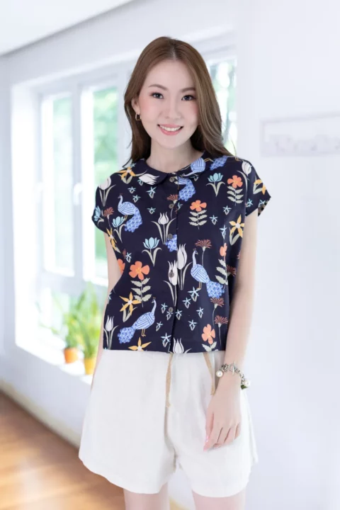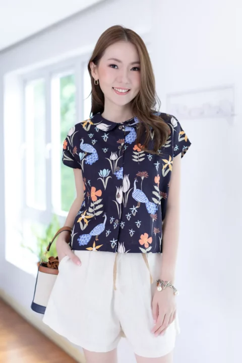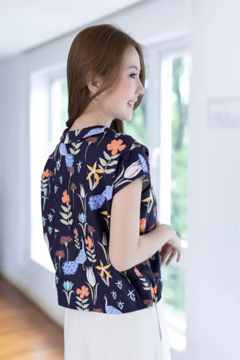 PT0300 Peacock Crop Boxy Shirt – Navy Blue