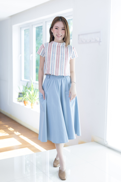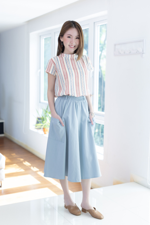 Size 39 (ป้าย L) – รอบอก 39”-40”, คอกว้าง 7”, ไหล่ 16”, แขนยาว 4”, รอบวงแขน 18”, รอบปลายแขน 12”, ยาว 21.5”, รอบชายเสื้อ 40”