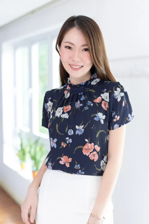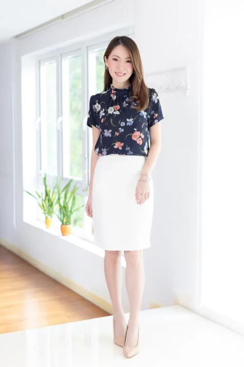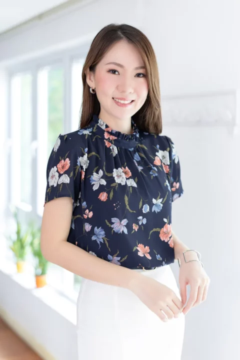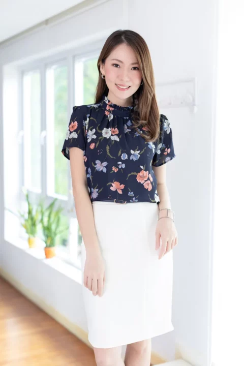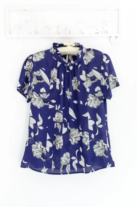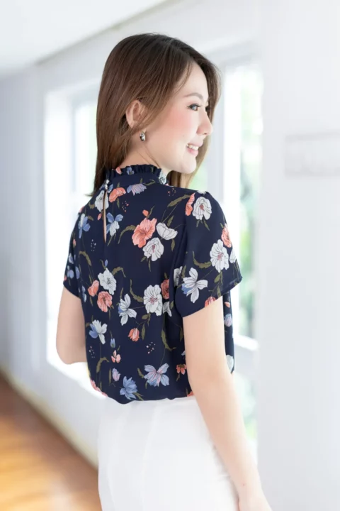 เสื้อคอปิดจับจีบตั้งๆกลับมาแล้วค่า เนื้อผ้าชีฟองพิมพ์ลายกราฟิกดอกไม้ ผ้าทิ้งตัวนิดๆ ตัวผ้าจะยังโปร่งแสงบางมุมยังแนะนำให้ใส่ซับในนะคะ ใต้คอจับจีบรูดเบาๆโชว์ความพลิ้วสวยของผ้า แขนสั้น ด้านหลังผ่าหยดน้ำติดกระดุม สาวกชีฟองถูกใจแน่นอนค่ะ